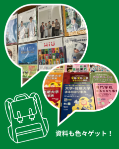 ずらりと並んだ40校以上のパンフレットから、気になったものを積極的にゲット!